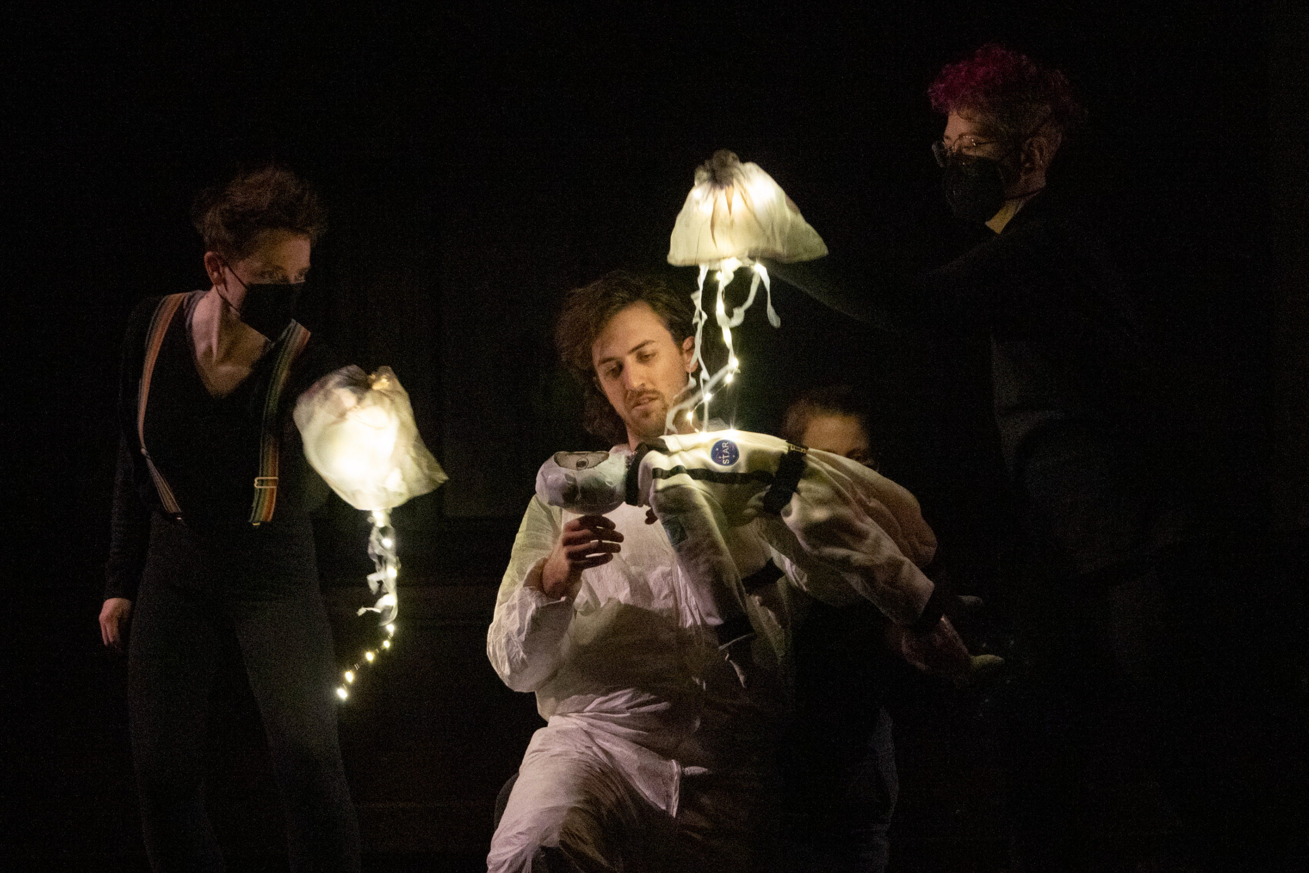 NYU Experimental Theatre Wing. created by Oliver Demers, in devised collaboration with Lars Montanaro, Bre Tomey, Meghan Piper Johnson, Lucie Allouche, and Maya Hendricks. original music by Oliver Demers, JD Askin, Max Chidzero, Yen-Yu Chen, and Ryo Jaeger. photos by Cati Kalinoski